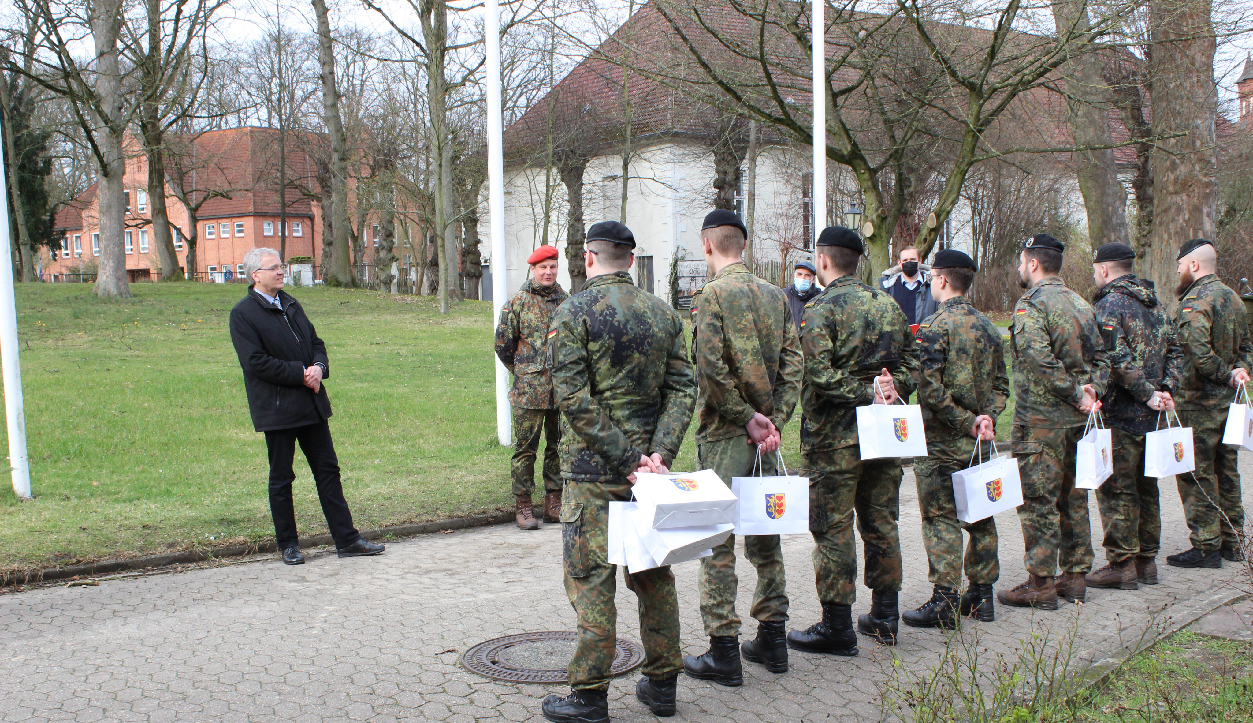 Auch der KVK-Leiter Oberstleutnant Heyner bedankte sich bei seinen Soldaten für ihr besonderes Engagement: „Zwar sind die Fallzahlen während des Einsatzes im Dezember, Januar und Februar leider noch gestiegen. Durch die neue Herangehensweise des Gesundheitsamtes wird unsere zusätzliche Unterstützung nun nicht mehr benötigt – die Infizierten melden sich nun eigenständig beim Gesundheitsamt.“ Seit dem Ausrücken einiger Soldaten des Lüneburger Aufklärungslehrbataillons 3 nach Litauen werden die Männer zumal dringend auf anderen Posten gebraucht. „In Gedanken sind wir bei unseren Kameraden in Litauen“, so Oberstleutnant Heyner. Auch Herr Böther sprach allen Soldaten seine Verbundenheit aus.