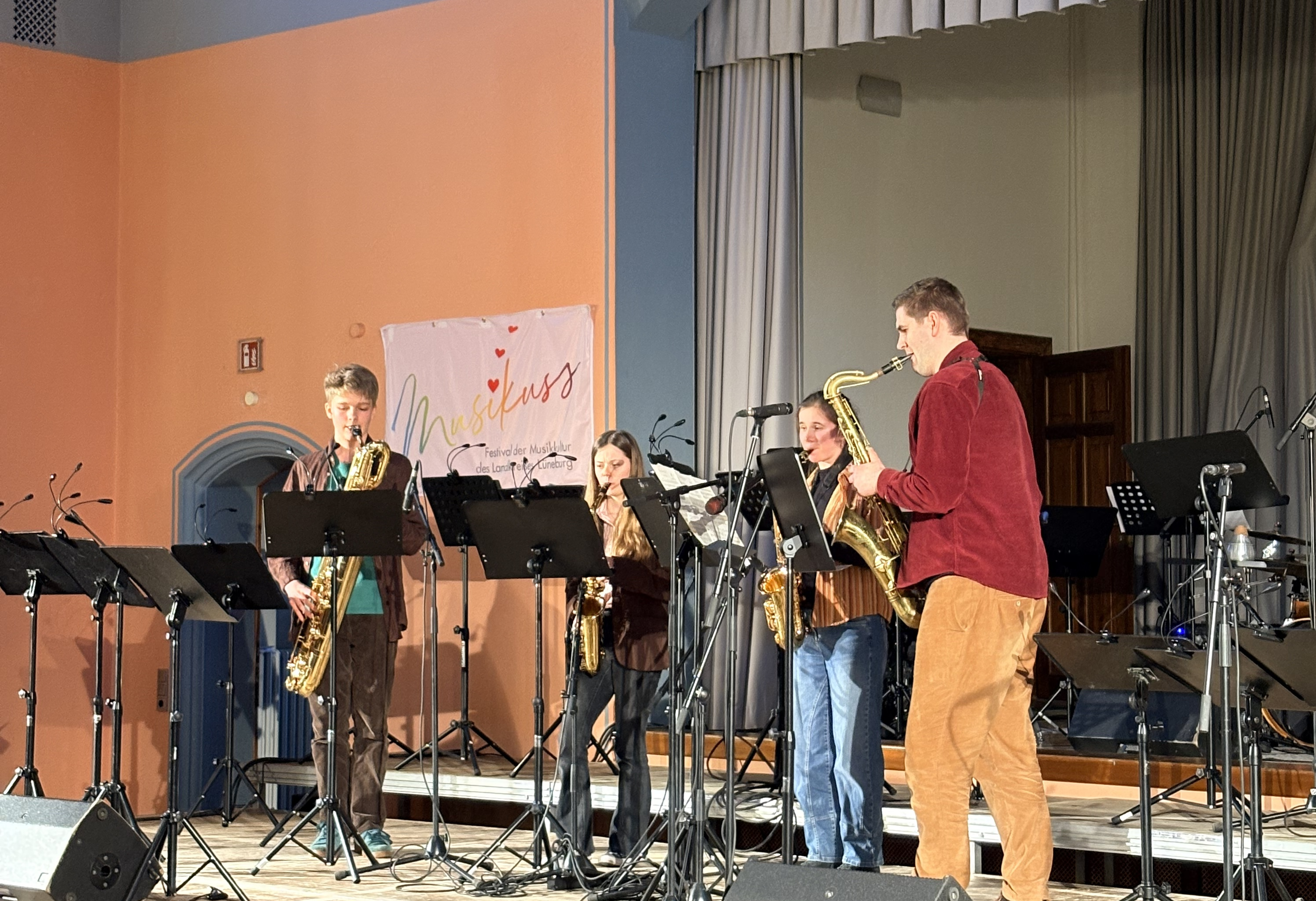 Das Saxophonquartett der Musikschule Lüneburg unter Leitung des Saxophonisten Hauke Schlüter ist ein Ensemble, das für hervorragende Nachwuchsarbeit in Lüneburg steht. Zusammengefunden haben sich Johanna, Paulus, Linus und Hauke durch den Unterricht an der Musikschule, seit Sommer 2025 musizieren sie gemeinsam. Die meisten von ihnen spielen ihr Instrument bereits seit vielen Jahren, zu hören sind ein Sopran-, ein Alt-, ein Tenor- und ein Baritonsaxofon. Das Quartett führt durch ein buntes und abwechslungsreiches Programm von den Beatles bis hin zu Jazz-Klassikern. Konzerte des Hauke-Schlüter-Quartetts versprechen stets eine vielfältige Mischung bekannter Klassiker und jede Menge Freude an der Musik!