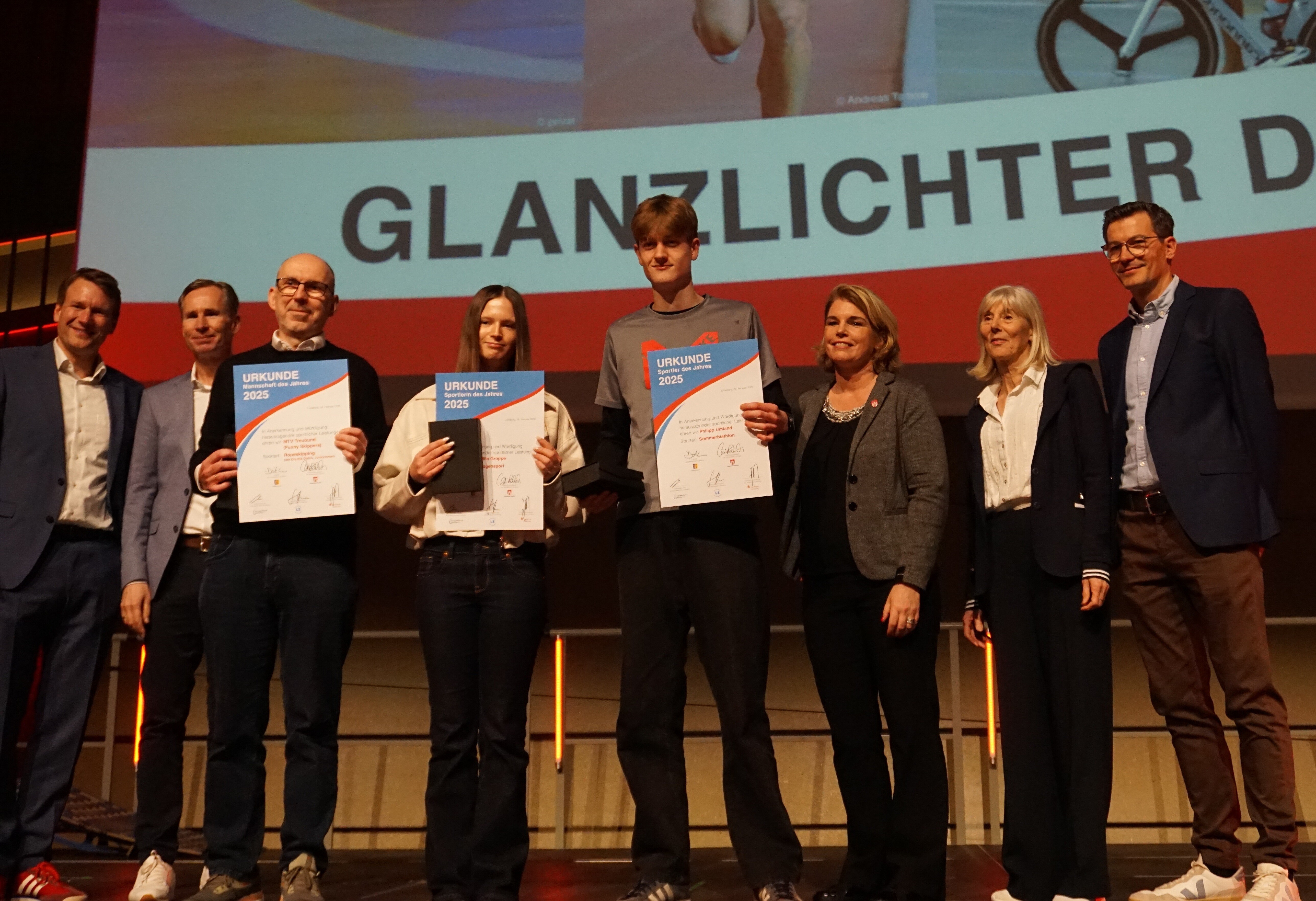 Einmal jährlich organisiert der Landkreis gemeinsam mit der Hansestadt, dem Kreissportbund Lüneburg e.V., der Landeszeitung und der Sparkasse Lüneburg die Veranstaltung Glanzlichter des Sports - Ehrung der Sportlerinnen und Sportler. Dort werden die Sporttreibenen ausgezeichnet, welche im Vorjahr Spitzenleistungen erbracht haben. Die genauen Auszeichnungskriterien sowie das Meldeverfahren finden sich auf der Homepage des Kreissportbund Lüneburg e.V..