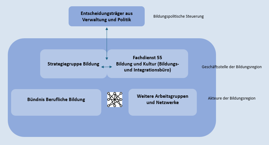Die Strategiegruppe Bildung ist das Steuerungsgremium für die Bildungsregion und zudem beratendes Gremium für die Kreispolitik. 27 Mitglieder vertreten darin ihre Institution. Alle Bereiche entlang der Bildungsbiographie von der frühkindlichen Bildung über die schulische Bildung bis hin zur Erwachsenenbildung sind vertreten.
