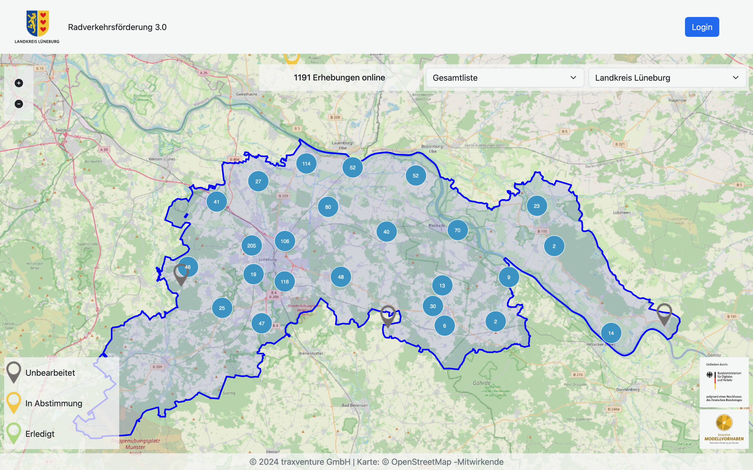 Fahrradfahren soll in der gesamten Region attraktiver werden: mit gut ausgebautem Wegenetz und übersichtlicher (auch digitaler) Wegweisung. Das ist das Motto und gleichzeitig die Aufgabe der Radverkehrsförderung 3.0. Gemeinsam mit der Leuphana Universität Lüneburg wird der Landkreis Lüneburg bis Ende 2025 vom Bundesministerium für Verkehr und Infrastruktur gefördert.
