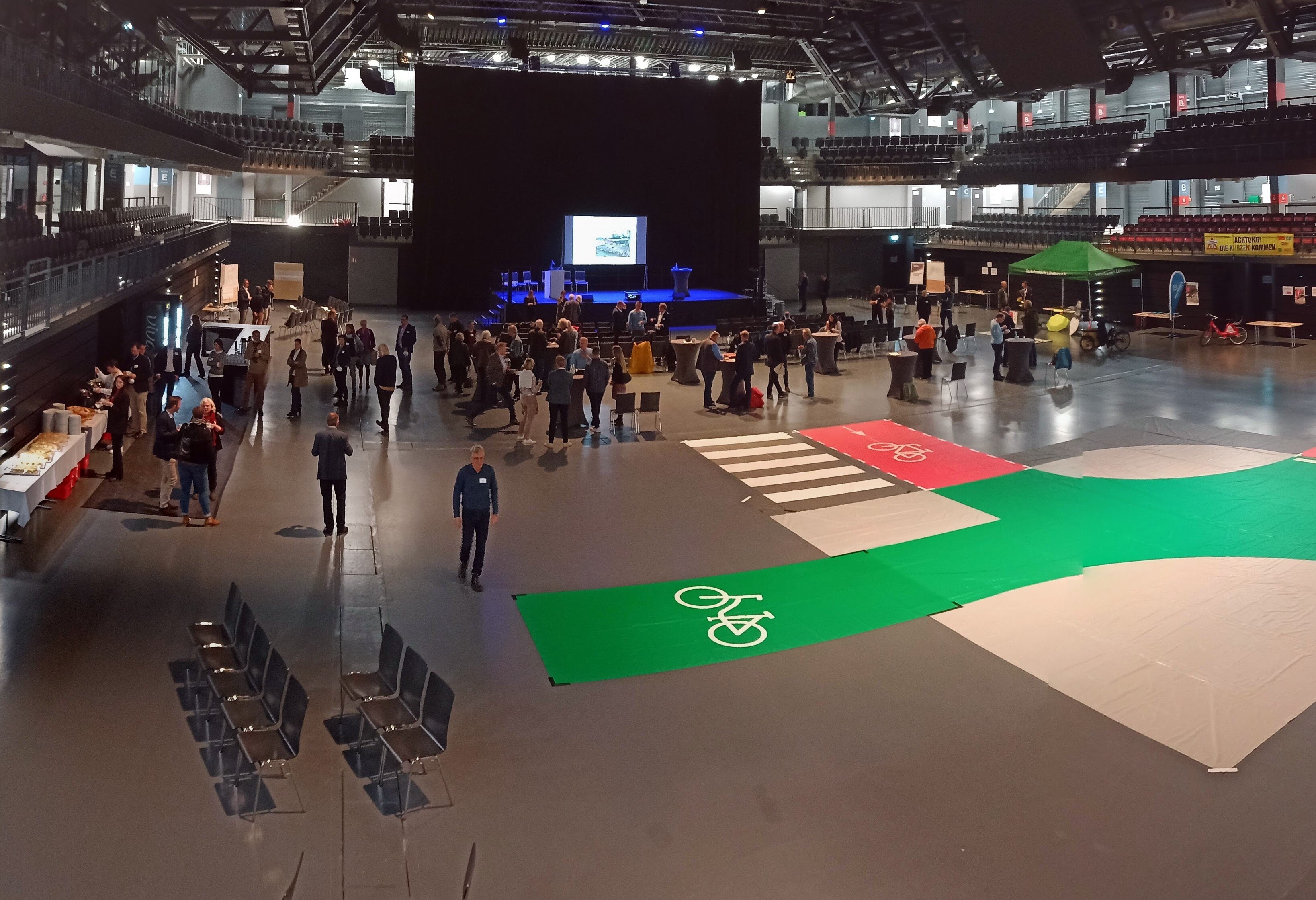Den Radverkehr ins Rollen bringen - das ist das gemeinsame Ziel der Region. Rund 100 Teilnehmende haben sich im September 2022 zur ersten Radverkehrskonferenz in der LKH Arena getroffen. Eingeladen zu der Auftaktveranstaltung hatte die Kreisverwaltung, um alle Kommunen, Straßenbaulastträger und Politik zu informieren, zu vernetzen und den Austausch untereinander zu fördern.