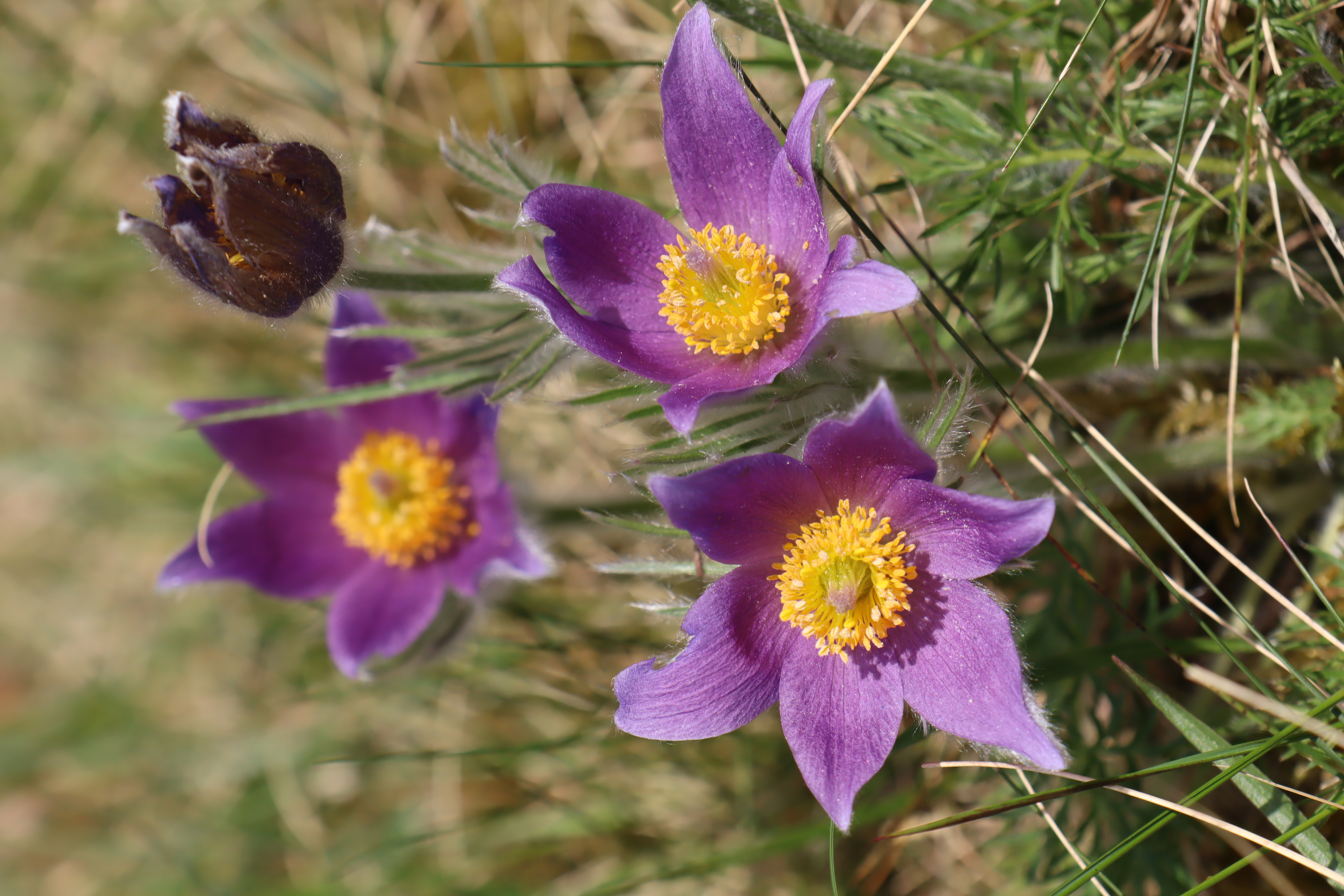 Die Küchenschelle blüht von April bis Mai und kommt meist auf Magerrasen oder in lichten Kiefernwäldern vor.