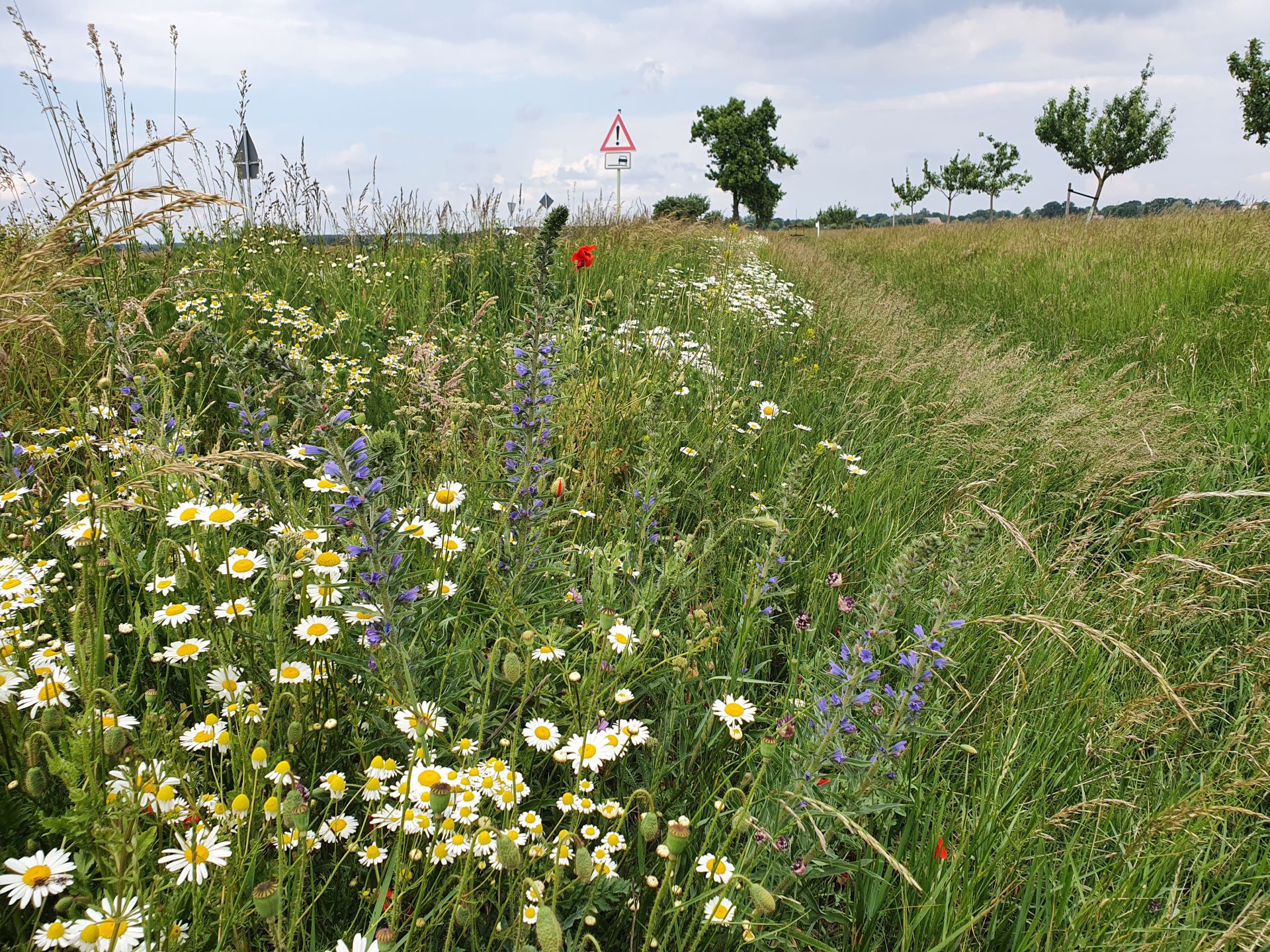 Im Rahmen des Projektes „Biotopverbund Elbtal Amt Neuhaus (BENe) – unter besonderer Berücksichtigung des Blühaspektes“ sind verschiedene Pflegekonzepte für Wegraine inklusive angrenzender Kompensationsflächen entstanden. Wegraine sind ein wichtiger Baustein im Biotopverbund unserer Kulturlandschaft. In den vergangenen Jahrzehnten wurden Wegraine und Straßenseitenräume der Gemeinden und des Kreises mit Mulch-Mähern gepflegt. Wissenschaftliche Untersuchungen haben gezeigt, dass das Mulchen einen negativen Einfluss auf die Artenvielfalt hat.