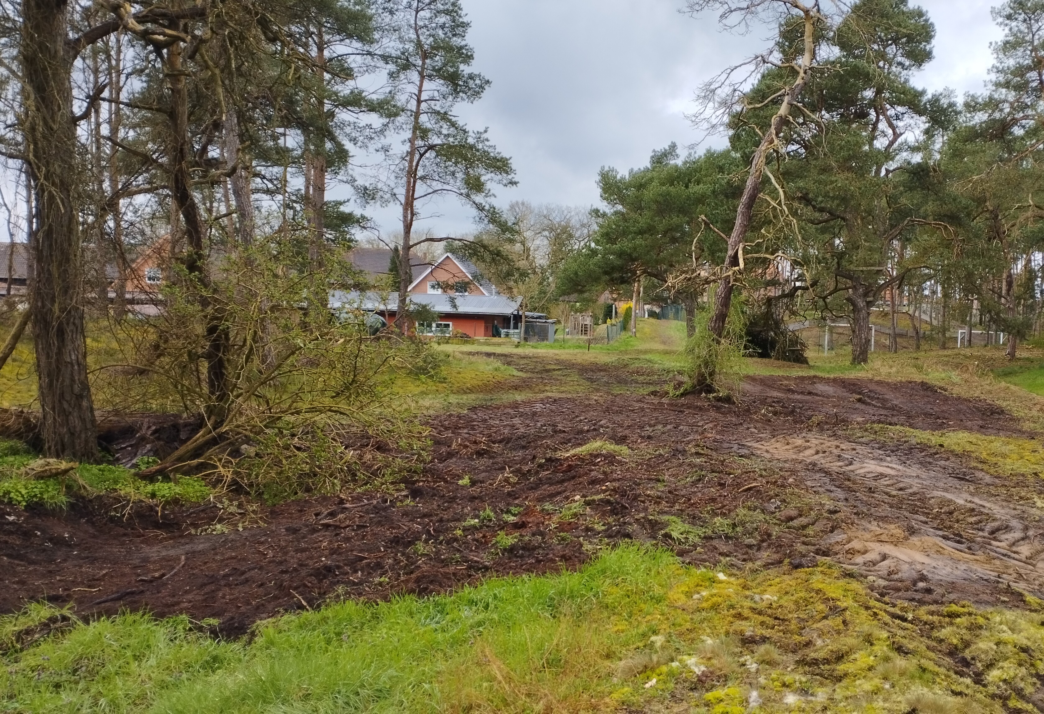Erste Maßnahmen zum Abtrag von Waldmoos einschließlich der humosen Rohboden-Auflage sollten auf ausgewählten und begrenzten Teilflächen der stark vom Waldmoos überzogenen Kiefernwälder im Herbst/Winter 2022/2023 umgesetzt werden. Ausgewählt wurden überwiegend Flächen der öffentlichen Hand (BRV und Gemeinde Amt Neuhaus); aber auch auf zwei privaten Eigentumsflächen konnten diese Maßnahmen vorbereitet und schließlich umgesetzt werden.