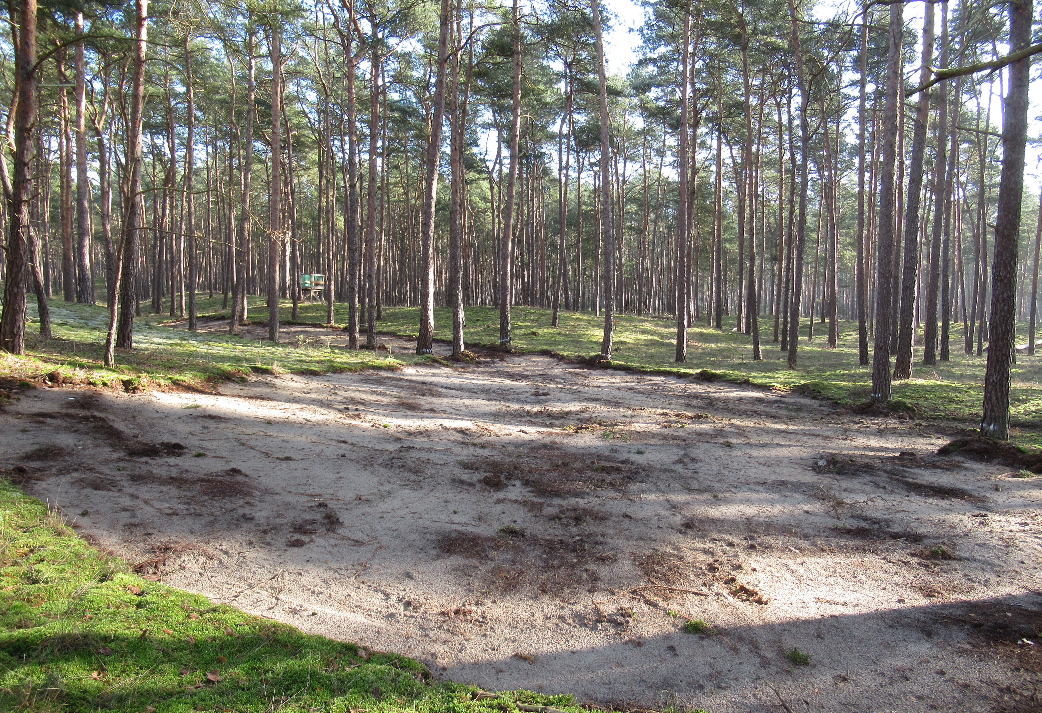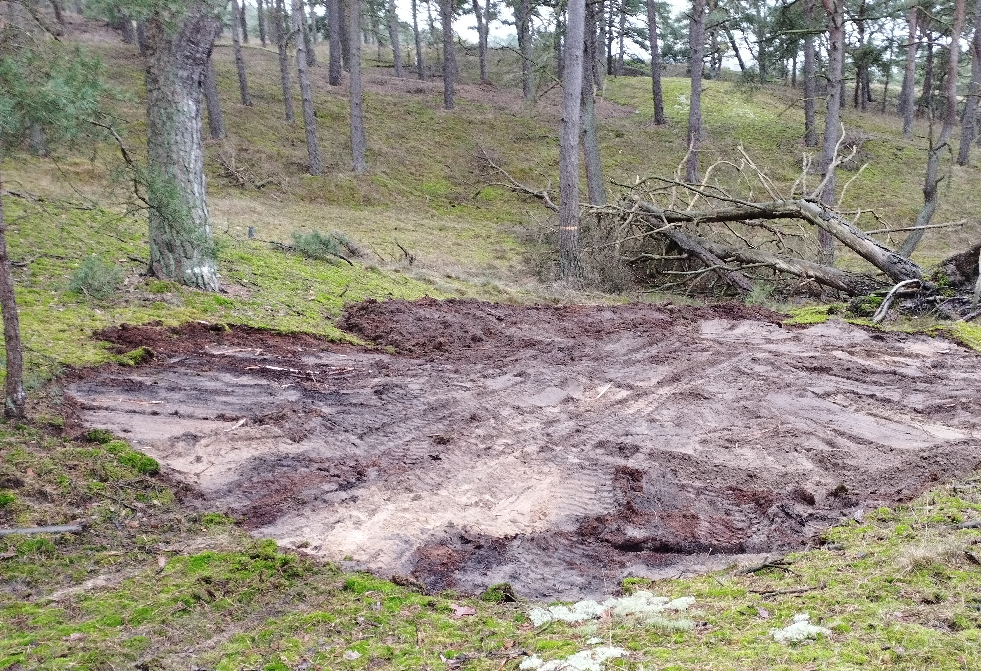 - Abtrag der Moos- und Rohhumusauflage (Imitierung der historischen Streunutzung) einschließlich Abplaggen des Drahtschmielen-Filzes,