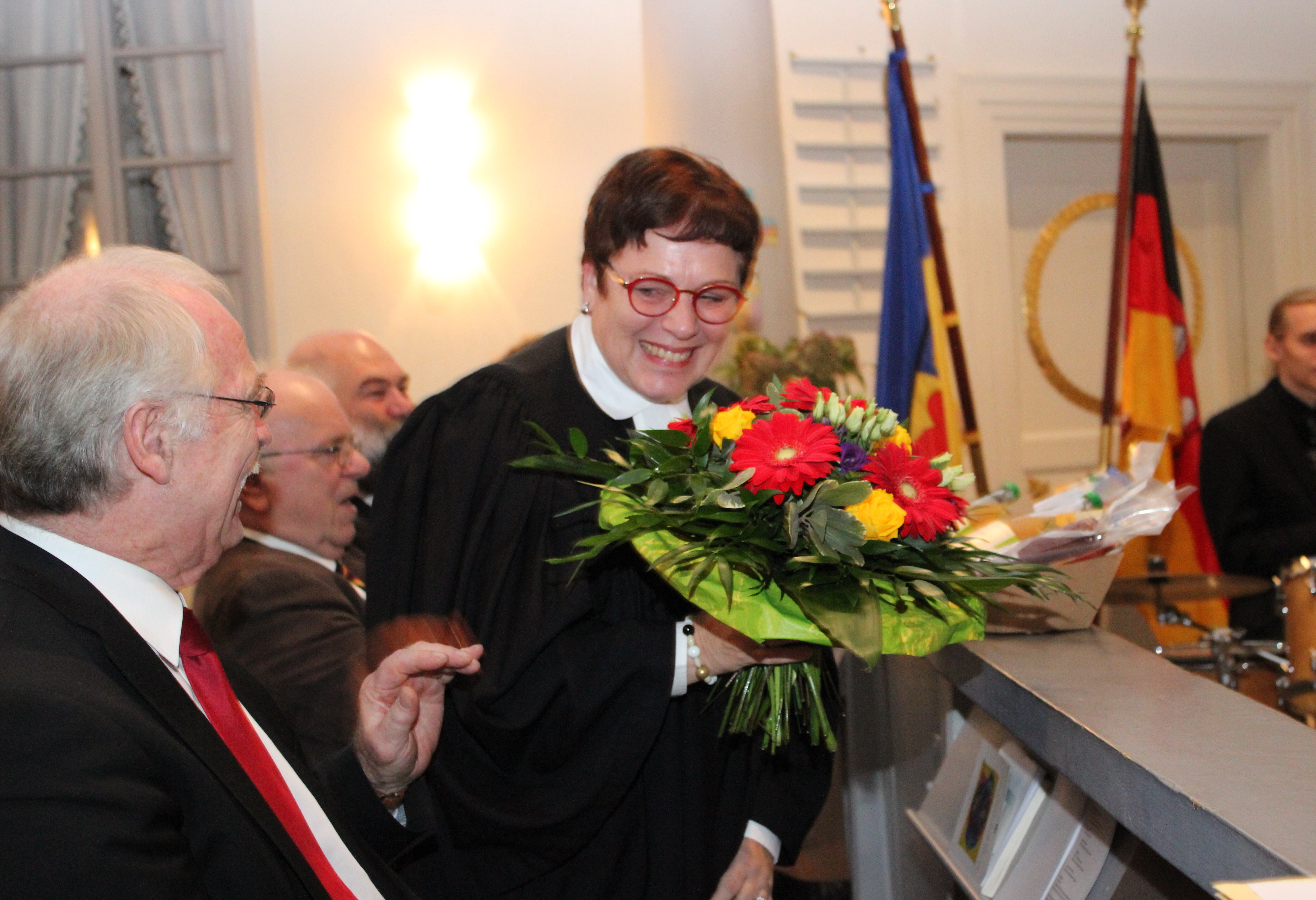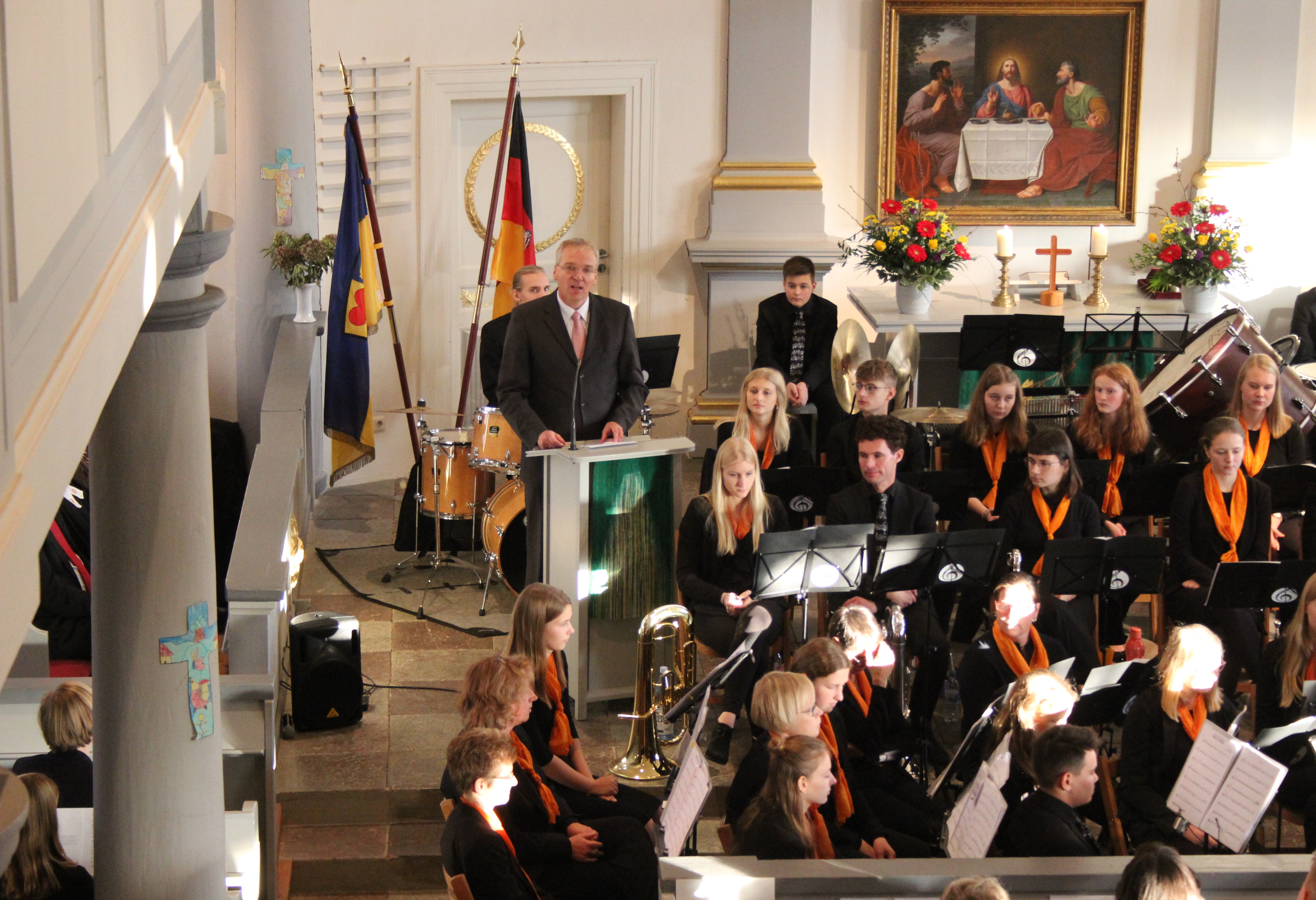 Diese Botschaft gaben die Festredner Professor Dr. Richard Schröder und der ehemalige Beauftragte für die Stasi-Unterlagen Jörn Mothes den Gästen mit auf den Weg. Beide boten mit zahlreichen Schicksalsbeschreibungen und Anekdoten – nachdenklich, aber auch amüsant – einen Rückblick auf die Friedensgebete und die Ereignisse vor der Wende. „Die Deutsche Einheit war ein Geschenk, das nicht vom Himmel fiel“, fasste Jörn Mothes die Geschichte der Friedlichen Revolution zusammen. Alle seien selbst mitverantwortlich dafür, die damals errungene Freiheit zu erhalten.